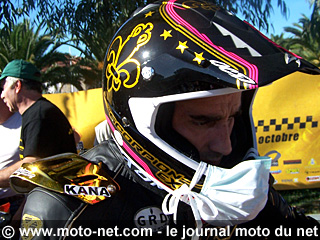 Lors de la remise des prix, c'est carrément Giaccomo Agostini himself qui remet la coupe aux premiers de l'étape du jour. Grande émotion donc pour Robert Doron, le boss de Paris Nord Moto, lorsque Ago lui remet la coupe du premier de la catégorie Classique... Des images de sa jeunesse on dû lui traverser l'esprit car Bob et Ago sont de la même génération et ont déjà roulé sur les mêmes circuits en même temps...