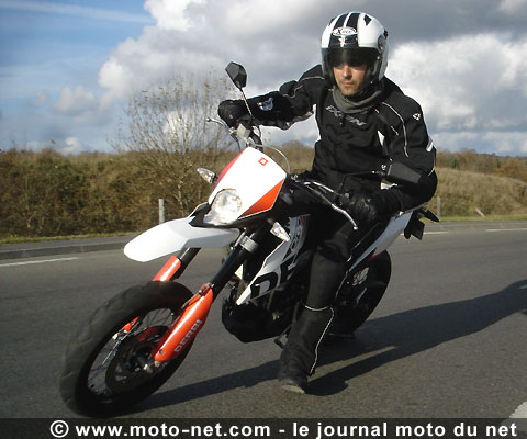 Entièrement tournée vers le sport, la Derbi sacrifie donc le confort sur l'autel des performances : un trait commun aux Supermotards les plus exclusifs, mais dont le degré d'importance variera en fonction de l'âge et des attentes de son pilote... Attiré par les fines lames, ce dernier ne s'agacera alors probablement pas de la radicalité de l'espagnole tant ses qualités dynamiques se montrent à la hauteur.