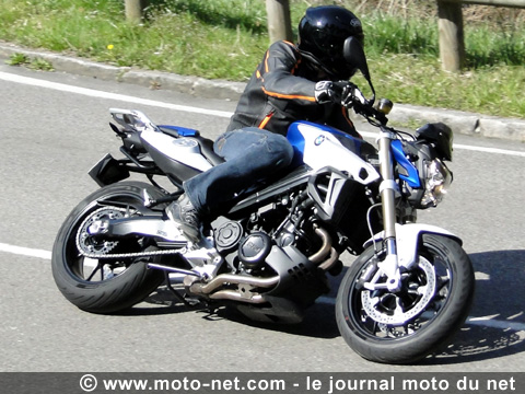 En sortie de virage aussi la F800R est plus facile à maîtriser, car même en ouvrant les gaz en grand et sur le bon rapport, la réaction de la moto reste prévisible : son train arrière s'affaisse gentiment, peut éventuellement rebondir sur un revêtement fatigué, mais la trajectoire est somme toute conservée.