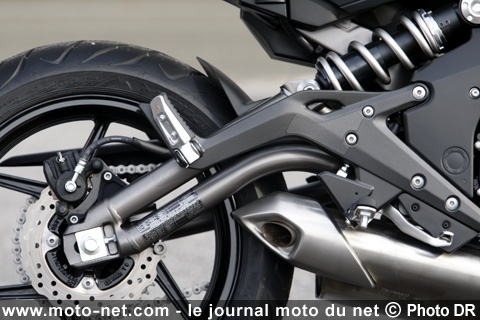 Bien moins pratique en revanche : la petite Kawette fait l'impasse sur la béquille centrale, pourtant bien utile, ne serait-ce que pour graisser la chaîne après des kilomètres sous la pluie !