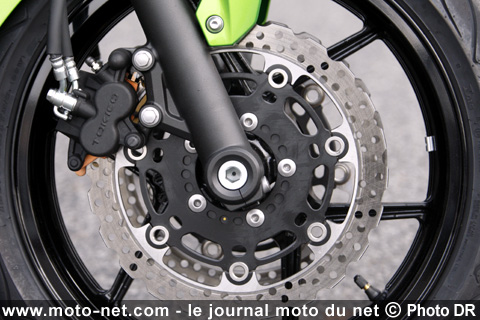 "Attention, ces ER-6f sont dépourvues de l'ABS", nous avertissait à juste titre le responsable presse au moment de partir. "Les versions ABS, qui représentent environ 50% des ventes des "f" (contre 20% des "n") arriveront un peu plus tard, courant avril".