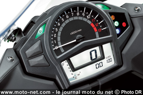 Mais nous pouvons d'ores et déjà signaler à nos lecteurs que la nouvelle instrumentation de l'ER-6f est très satisfaisante : la vitesse est affichée en grand, le compte-tours à aiguille est parfaitement lisible et la quantité d'infos distillées est impressionnante.