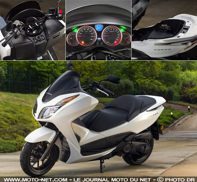 La première, c'est évidemment son prix car le Forza est affiché à 5 290 € au 16 avril 2013, soit 710 € de moins qu'auparavant ! Une économie réalisée grâce, notamment, à l'abandon de la boîte S-Matic. En outre, il emprunte au SH 300 son monocylindre de 279cc à refroidissement liquide développant 25,5 ch pour 26 Nm de couple.