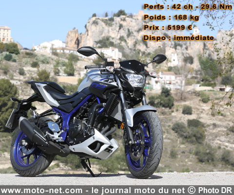 Jantes alliage à cinq branches dédoublées, silencieux d’échappement, réservoir d’essence de 14 litres, système de freinage ABS non déconnectable, selle biplace à deux niveaux, position des repose-pieds : toutes ces équipements découverts sur la R3 sont repris à l’identique sur la MT-03. Un partage de plate-forme déjà opéré par Yamaha dans sa gamme "MT" avec la MT-125, calqué sur la sportive YZF-R125.