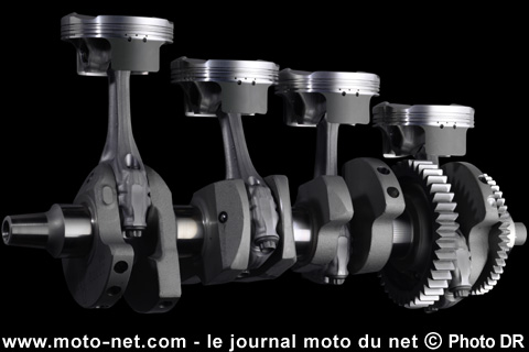 Les cotes du 4-cylindres en ligne de 998 cc se radicalisent (79 x 50,9 mm, contre 78 x 52,2 auparavant), sa puissance grimpe de +9% et son poids fond de -8%. Chiffres toujours : en son centre tourne un nouveau vilebrequin dont le moment d'inertie diminue de -20% en comparaison du modèle précédent à en croire les ingénieurs japonais.