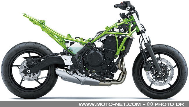 Les tubulures du cadre treillis suivraient "une ligne idéale", composée d'un maximum de parties rectilignes et de courbes les plus ouvertes possible. Inaugurée sur l'extraordinaire Ninja H2, une nouvelle technique d'analyse aurait aussi permis de déterminer plus précisément le diamètre et la longueur des tubes, ainsi que l'épaisseur des parois... et d'alléger le cadre de 10 kg par rapport à l'ER-6n !