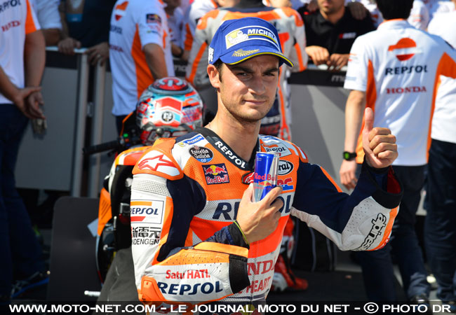 "Dani attaquait fort, jusqu'au dernier tour il jouait la victoire", s'est exclamé Marquez, un peu surpris du retour canon de Dani Pedrosa qui a brillamment joué des coudes pour imprimer son rythme en deuxième partie du Grand Prix avec les pilotes officiels Yamaha, en particulier Valentino Rossi...