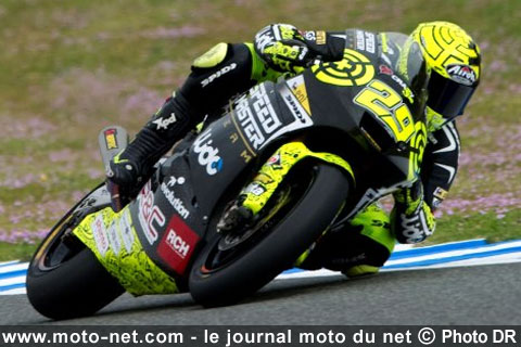 Randy de Puniet et Valentino Rossi ont un retard conséquent sur le chrono de référence (0.831 sec pour Randy et 0.958 sec pour Rossi) et devront trouver de la vitesse pour tenter de donner la réplique aux hommes de tête cet après-midi lors de la séance de qualifications (lire le programme du GP d'Espagne ci-contre).