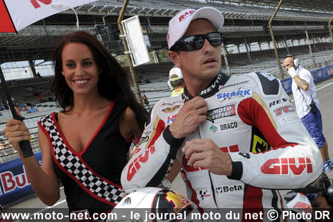 Désormais septième au provisoire, à un point de Ben Spies, le sympathique américain a une nouvelle fois prouvé sa pugnacité à Indianapolis, puisqu'il a assuré une belle sixième place en course alors que sa combinaison Alpinestars frottait directement sur le sol dans les virages à gauche (voir photo ci-contre) !