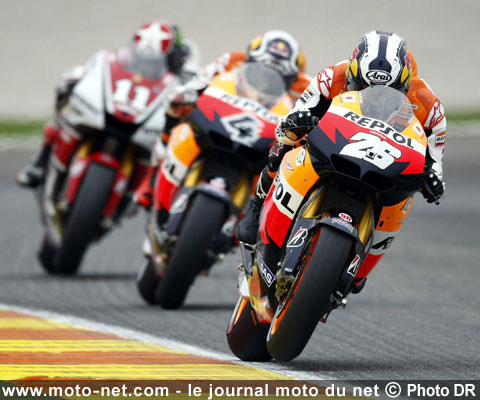Battu par Dovizioso ce week-end au terme d'une bataille époustouflante, Dani Pedrosa doit absolument faire montre de plus de consistance, tant dans les conditions difficiles que sur la durée d'une saison, pour décrocher le titre mondial. Et si la chance pouvait lui sourire un peu plus, il est évident que la tâche du surdoué espagnol s'en trouverait grandement simplifiée !