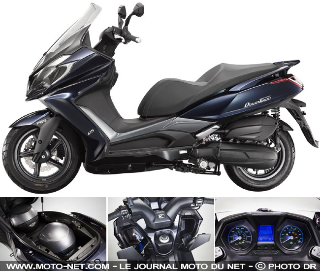 Fer de lance de la gamme scooter Kymco, le Downtown bénéficie pour 2016 d’un séduisant coloris Deep Blue, qui complète les actuels coloris gris mat et blanc. Il devient par ailleurs conforme aux normes antipollution Euro 4.