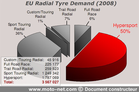 Le nouveau Bridge se trouve donc au coeur d'un segment capital pour les manufacturiers : l'hypersportif. Il représente, d'après le fabricant, la moitié des ventes européennes de pneus radiaux, devant les pneus de tourisme, pour trails, de compétition et pour customs.