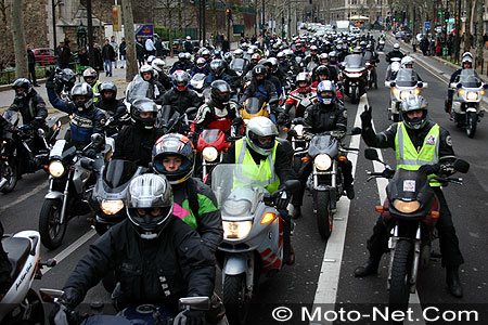 La météo tristounette et les gros départs en vacances n'ont pas empêché une petite centaine de motards parisiens d'arpenter le pavé humide cet après-midi, au départ du Château de Vincennes, pour aller prêcher la bonne parole auprès des usagers de la route à l'appel de la FFMC Paris Petite couronne et Yvelines.