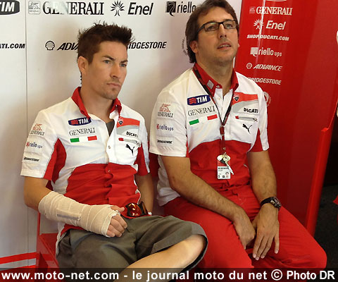 Forfait à Brno à cause de ses blessures à la main droite (lire MNC du 22 août 2012), son coéquipier Nicky Hayden a de son côté fait savoir qu'il serait de retour au guidon pour la prochaine course à Misano.