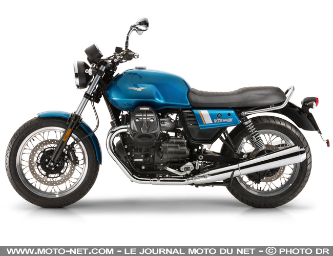 Le passager profite par ailleurs de meilleurs égards grâce à au repositionnement de ses repose-pieds, plus bas. Le pilote profite quant à lui d'une nouvelle selle installée plus bas (770 mm) et de repose-pieds en aluminium forgé. Comme en 2016, la V7 III se décline en trois versions, dont les détails sont à découvrir ci-dessous : la sobre Stone, la classique Special et la sportive "Racer" et ses demi-guidons.
