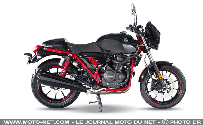Equipé du monocylindre 4-temps refroidi par eau de 278 cc de la Wolf - importée en France à partir de 2013 au format 250 cc -, cet inédit roadster de 28 ch et 25,5 Nm de couple joue la carte du vintage avec son phare classique surmonté d'un saut de vent teinté, sa selle plate et sa coque arrière arrondie.