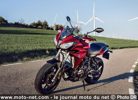 Le poids annoncé de cette nouveauté - qui rallume le flambeau laissé éteint par feu la XJ6 Diversion - est de 196 kg tous pleins faits. La prise de poids par rapport à la MT-07 ABS (+14 kg) s'explique par la greffe de semi-carénages sur lesquels apparaissent de petits déflecteurs ainsi qu'une prise 12V dans le retour droit. Cet habillage anguleux comprend aussi de pratiques protèges mains - avec clignotants intégrés - et une bulle à hauteur variable, sans outils.