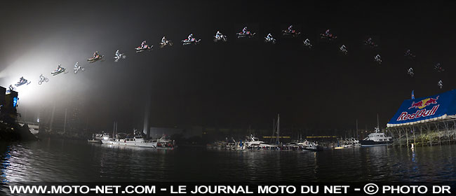 "À ses côtés, Robbie Maddison a quant à lui battu le record officieux du saut le plus long à moto lors de l’échauffement samedi en début de soirée", poursuit Red Bull. Car le grand soir, "Mado" n'a finalement décollé "que" sur 378 pieds et 9 pouces, soit environ 115,4 mètres : vous avez dit petit joueur ?!