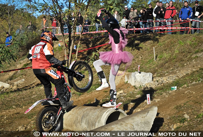 Pour ma part, chevauchant une splendide Gas Gas 280 prêtée par l'organisation et après avoir bataillé comme un diable au milieu des buses et autres rocailles, guidé par l'ignoble chevalier Sergei - habillé en danseuse pour cette épreuve des élites de l'équilibre, le bougre termine tout de même l'épreuve à la 7éme place ! -, j'arracherai quelques points dans la troisième zone sous les acclamations des potes du Team Moto-Net.Com venus me soutenir ! "Ouf, le plus dur est fait !", pensé-je alors (mais à tort...).