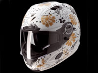 Se distinguant déjà du reste de la production de casques de moto par son Airfit Concept, le fameux système de gonflage des joues propre à Scorpion, le casque intégral Exo-1000 Air avec sa calotte en fibres de verre, Kevlar et Dynema adopte une nouvelle décoration pour le printemps : fleurs, papillons, constellations et motifs tribaux ornent ainsi la coque et l'intérieur de ce modèle équipé d'un calotin interne EPS à double densité.