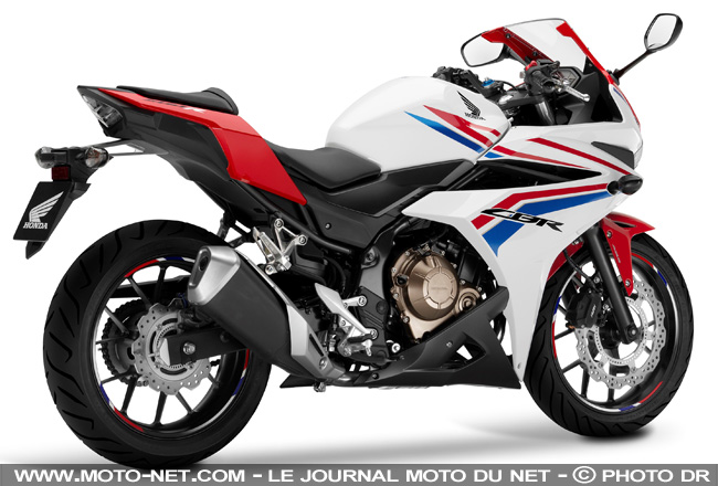 La petite sportive CBR500R accessible aux permis A2 (lire notre Duel MNC : la Honda CB5R00R face à la Kawasaki Ninja 300) adopte comme ses consoeurs un nouveau look plus agressif, un éclairage à LED, un plus gros réservoir (17,5 l au lieu de 15,7) et une fourche désormais réglable en précharge, ainsi qu'un échappement redessiné pour "mieux centraliser les masses" et améliorer sa sonorité.