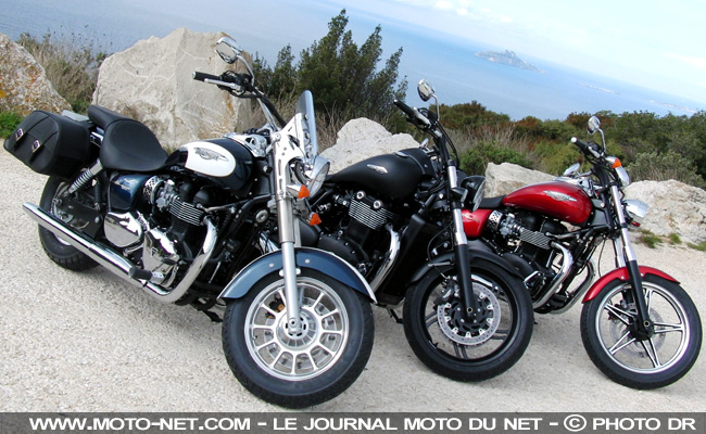 "Quand le monde du Cruiser multiplie les V-Twin, Triumph ose la différence avec des moteurs bicylindres parallèles de 865 à 1700 cc", clame fièrement le constructeur britannique dont la Rocket III se distingue aussi par son 3-cylindres en ligne revendiquant la plus forte cylindrée sur une moto de série : 2294 cc !