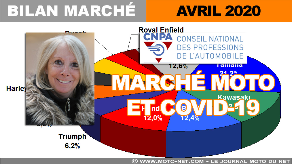 11 mai 2020 - Malgré l'activité extrêmement réduite en avril 2020 en raison du confinement instauré le 17 mars pour lutter contre le Covid-19, le Journal moto du Net continue de proposer à ses abonnés Premium les chiffres du marché moto et scooter. Découvrez nos graphiques ainsi que les 100 meilleures ventes en France par modèles.